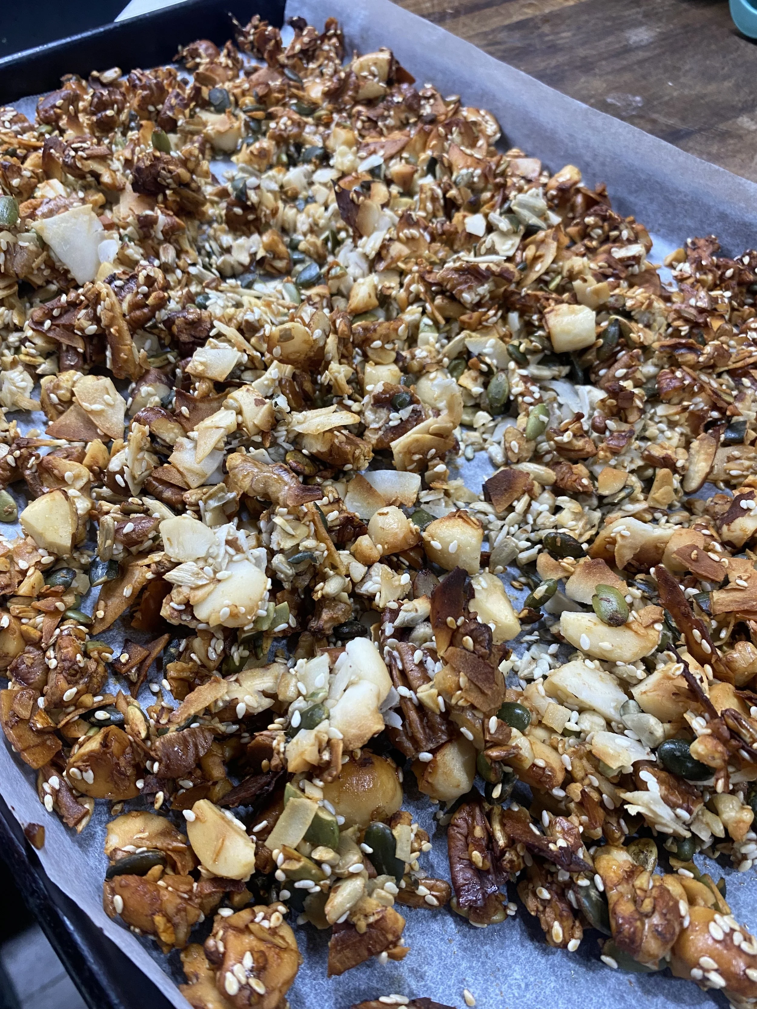 4. Spread out on oven tray and bake at 180 degrees till nicely toasted. Depending on your oven up to 20 minutes. *